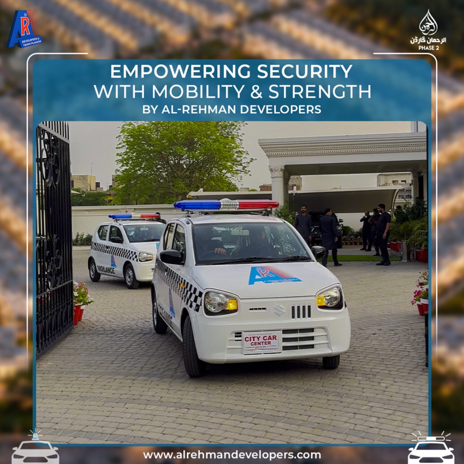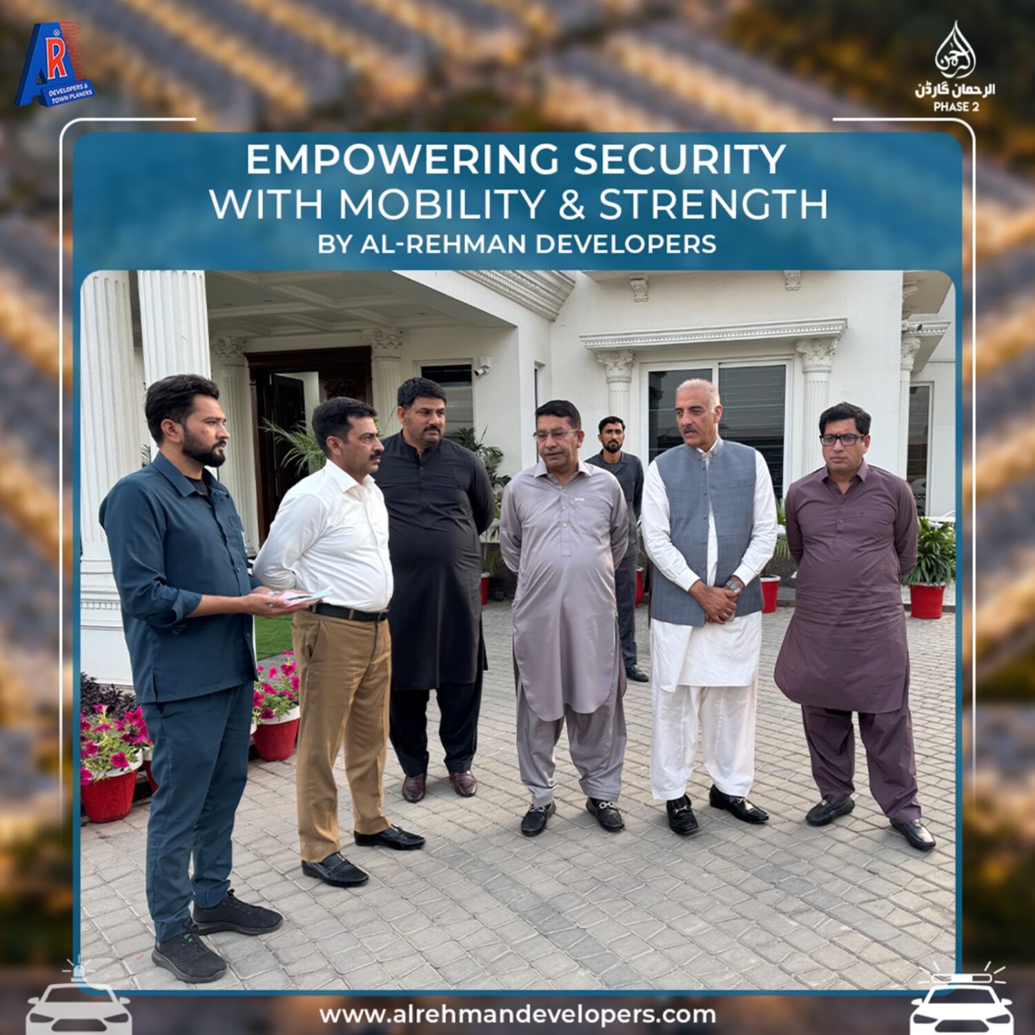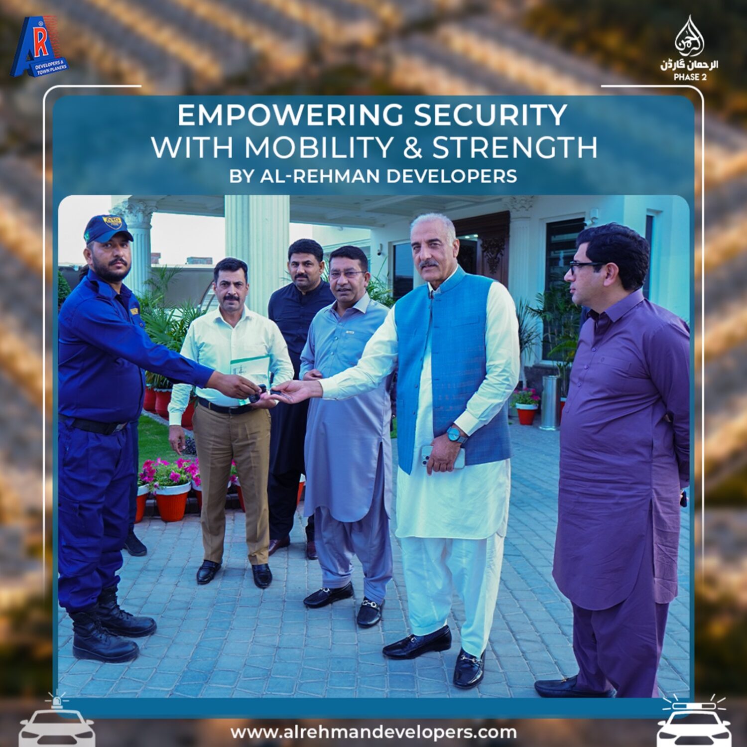 Chairman Mian Muhammad Mushtaq and Administrator Liaqat Ali Chattha have officially handed over new patrol vehicles to the dedicated security team of Al-Rehman Garden Phase 2. This important initiative by Al-Rehman Developers will strengthen security operations, improve rapid response, and provide a safer environment for all residents. The company remains committed to modern facilities and better community living standards.