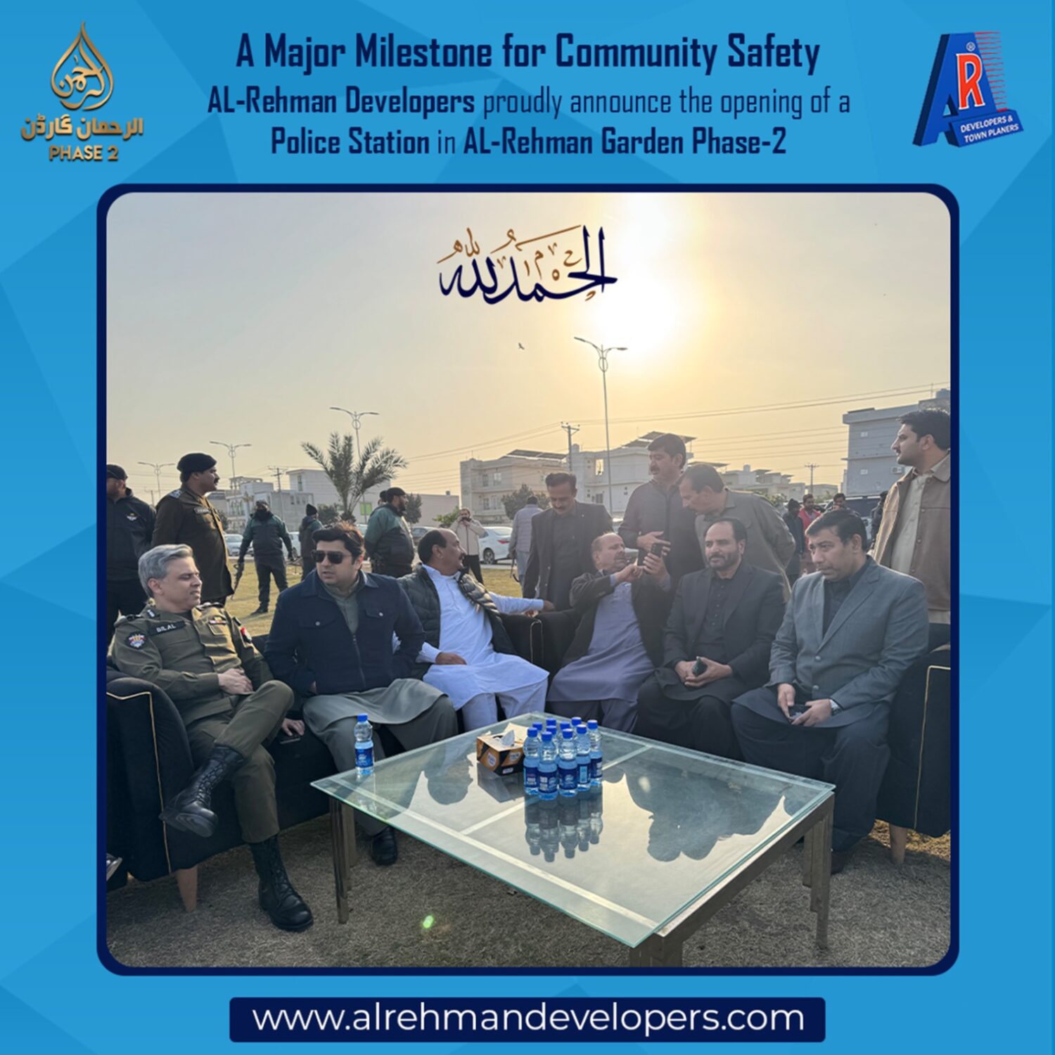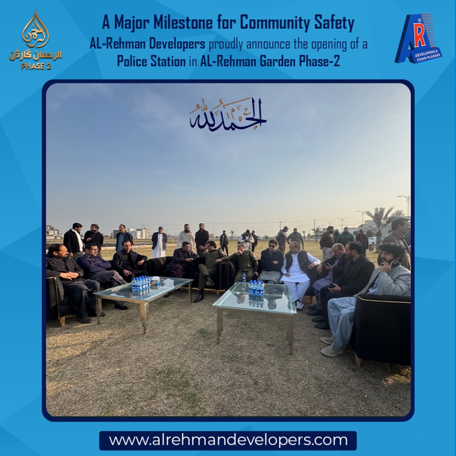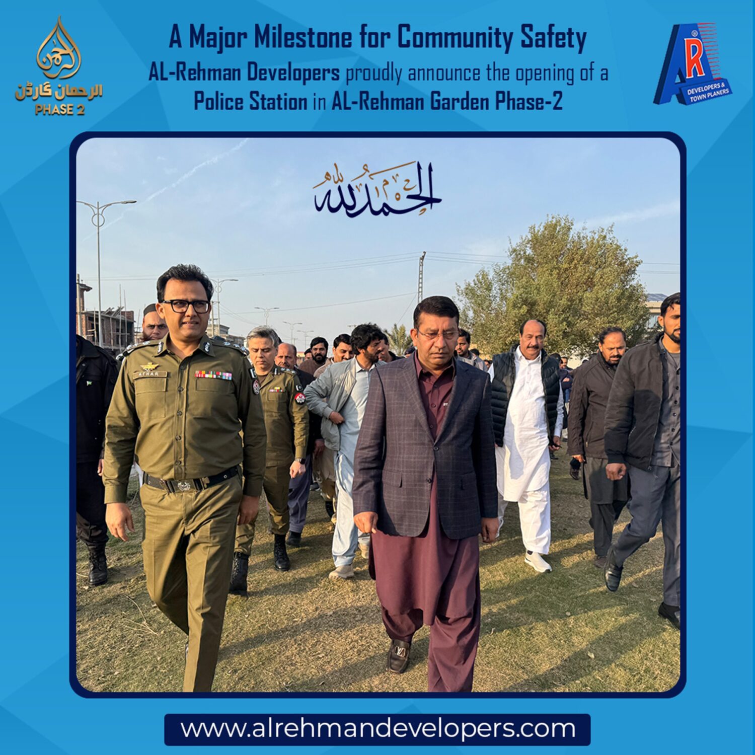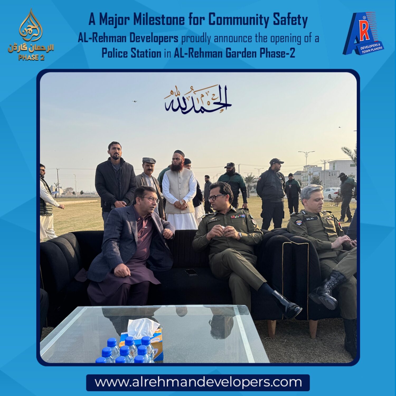 AL-Rehman Developers proudly announce the decision to establish a Police Station in AL-Rehman Garden Phase-2, further strengthening our commitment to providing a secure, peaceful, and well-managed living environment for our residents.