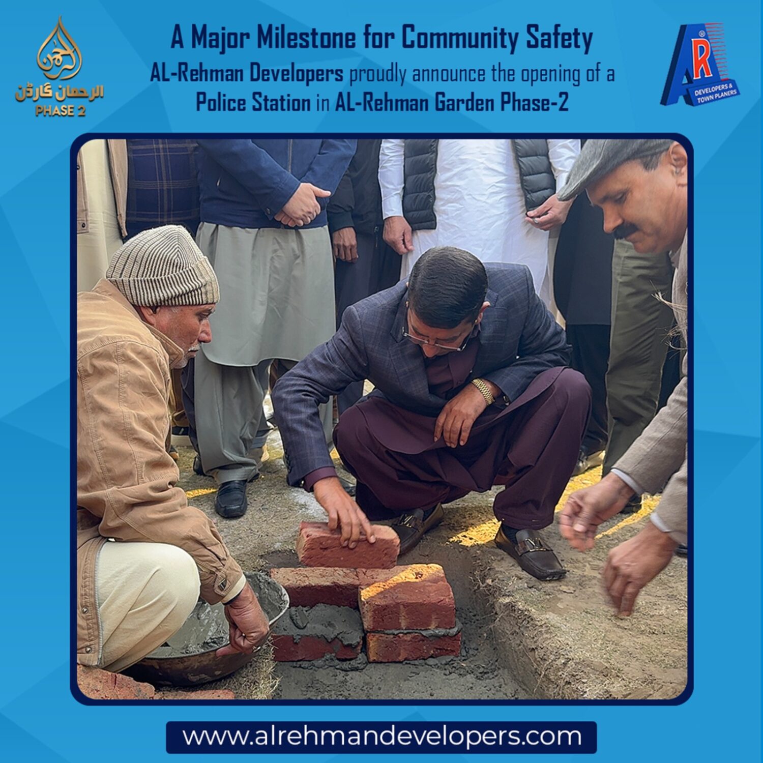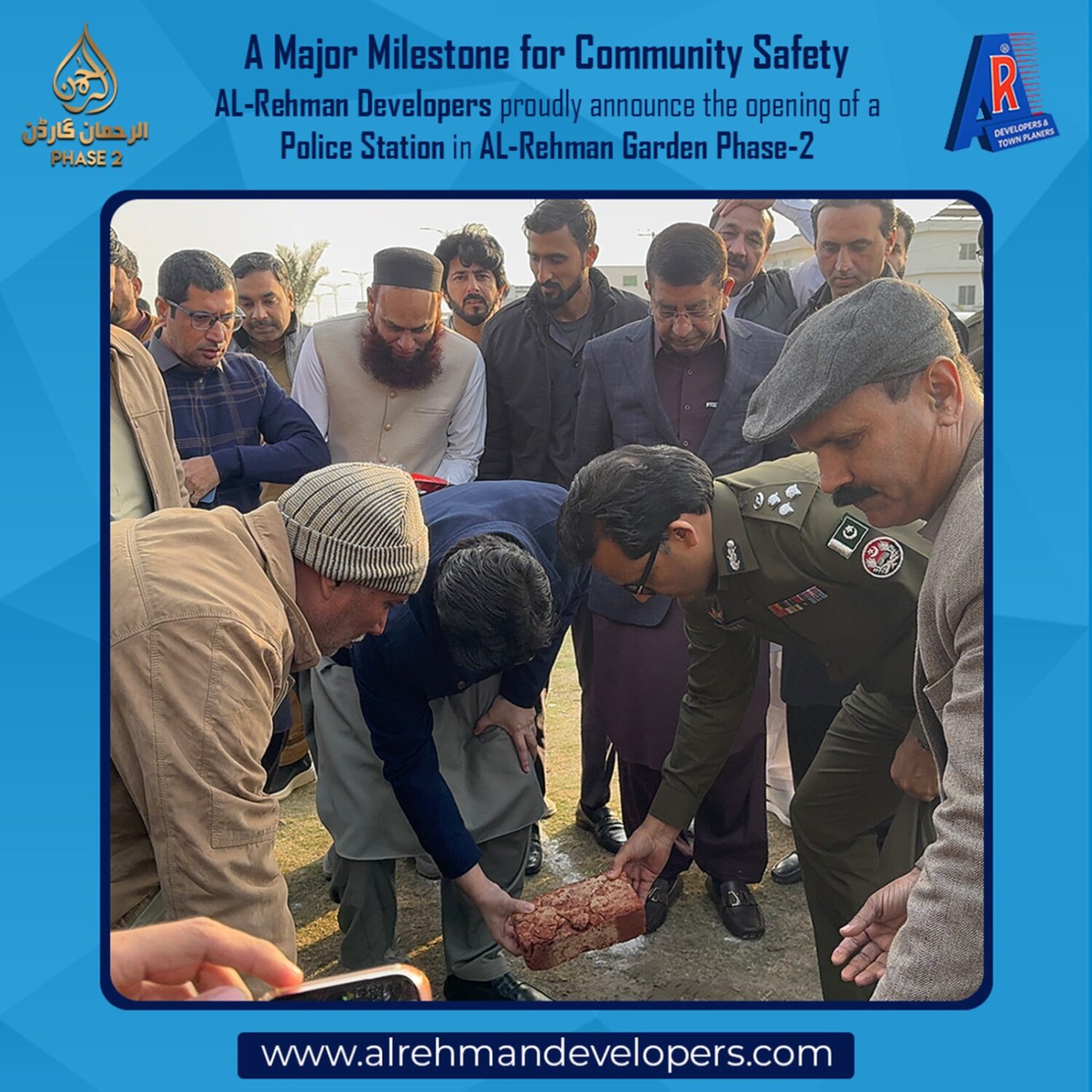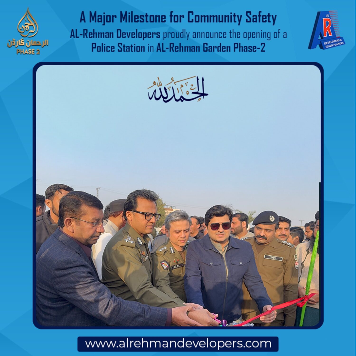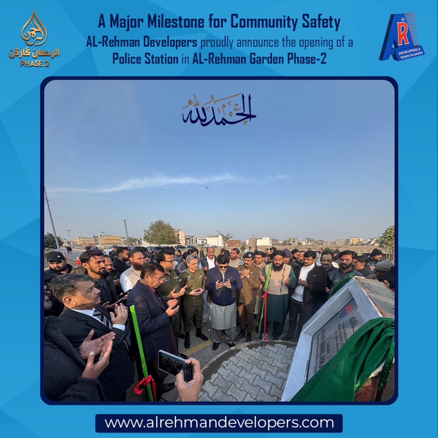 AL-Rehman Developers proudly announce the decision to establish a Police Station in AL-Rehman Garden Phase-2, further strengthening our commitment to providing a secure, peaceful, and well-managed living environment for our residents.
